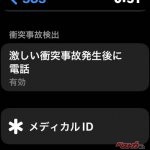 海外では「Crash Detection」と呼ばれるものだが、簡単に言えば後述するApple製品を所有している人が運転、または同乗中に衝突事故(正面、側面、追突、横転など)に遭った場合、まず最初に「安否を問う」画面を表示、それで反応が無い場合はiPhoneを経由して緊急通報サービスに電話をしてくれるという機能だ。
