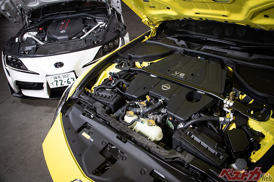 エンジンは高回転の伸びで速度を伸ばすスープラと対照的で、Zの3Lツインターボは4000rpmあたりのトルクの盛り上がりが力強い。