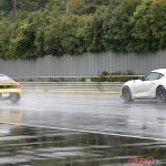 小降りになったタイミングで、まずはスープラからだ。スタート地点はヘビーウェット。トラクションコントロールをOFFにして、絶妙なアクセルワークでダッシュを決める。