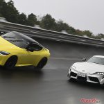 6気筒ターボを搭載した日本のFRスポーツカー「フェアレディZ」と「スープラ」。この2台の動力性能を試すため日本自動車研究所のテストコースに足を運んだ。雨の中、レーシングドライバー山野哲也がゼロヨンテストを敢行!!!