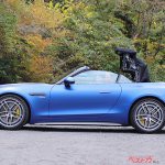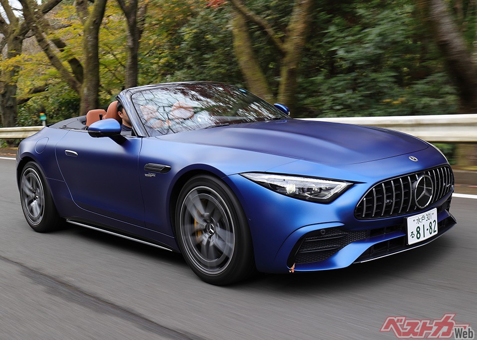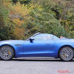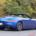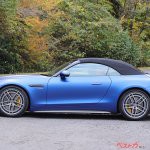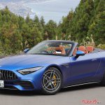 一方の新型AMG SL43はいかにもスポーツカー。車幅の広さと全高の低さに高揚させられる。