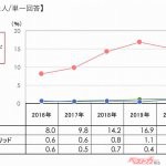 商品供給が絞られれば価格が上がるのは当然というわけで、1台あたりの中古車購入単価の平均を見てみると前年より1.6万円増加し、156.6万円となった。ただし値上がりはコロナ禍に見舞われた時期特有の動きではなく、ここ数年ずっと続いている傾向だ。過去8年間で見てみると、中古車の購入単価は39.3万円高くなっている。