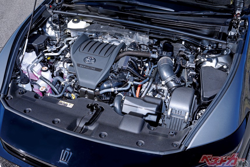 クラウンクロスオーバーRSに搭載された新開発の2.4Lターボハイブリッド(デュアルブーストハイブリッド)は、クラウンのイメージを大きく超えた迫力のある走りが特徴。