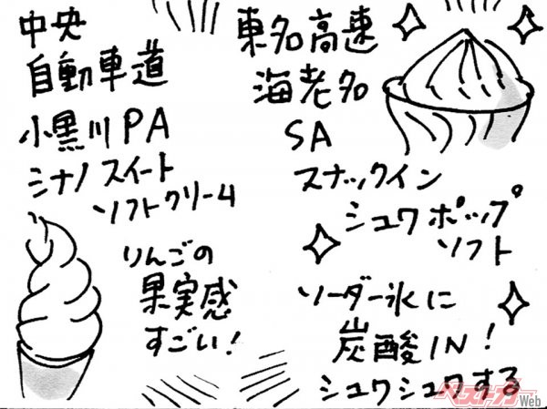 休憩でサービスエリア/パーキングエリアに立ち寄った際、ソフトクリームが売っているとついつい食べてしまいます。