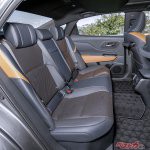 後席はラウンドしたルーフ後端がやや乗り降り時に気を遣うが、座ってしまえば頭上、膝前ともに広さに不満はない。