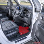 何よりも雰囲気を一変させているのがシートカバー(8万3600円/3列分)。シート全体を覆うフルタイプで合皮製ながら質感は十分、ホンダコネクトナビと連携する15.6インチのリア席モニター(14万9600円)と合わせて車内のゴージャス化に貢献している。