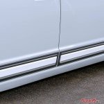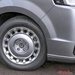 フロント周りでは、フロントグリルをダーククロームメッキ仕様(5万9400円)に交換、バンパー下部にはLEDビームライト付きのフォグライトガーニッシュ(5万6100円)を装着し、こちらもダーククロームメッキで仕上げることで、顔つきに華やかさを持たせている。これに合わせるアルミホイールはハイコントラストシルバーに塗装されたMG-029(2万7500円/1本)。サイズはノーマルと同じ16インチだが、たたずまいはぐっと引き締まった印象を受ける。