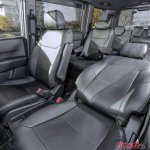 インテリアは、ステップワゴンの使い勝手はそのままにクールさが増した印象。ドアを開けるとLEDホワイトイルミネーション付きのサイドステップガーニッシュ(3万1900円/左右セット)が足元を引き締め、フットライト&センターコンソールイルミネーション(2万2000円)やドアポケットイルミネーション(1万1000円)がナイトドライブを彩る。