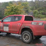 まずは、増岡さんの教え子、開発ドライバーの小出さんのドライビングでラリー仕様トライトン(実験車両)の同乗走行を体験する。