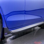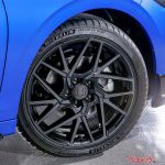 シビック用純正アクセサリーとしてラインアップしているアイテムよりもさらにスポーティで存在感のある造形とした「フロントロアースカート」や「サイドロアースカート」を装着。足元はブラック塗装のアルミホイールで引き締めている。