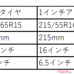 メーカー側でインチアップを行ったモデルは、標準タイヤ装着と最小回転半径が異なっている場合がある。これはタイヤ幅の増加によって、冬場にチェーンが装着できなくなったりしないようにするための措置だ。そこまで大きな変化ではないが、知っておいて損はない。