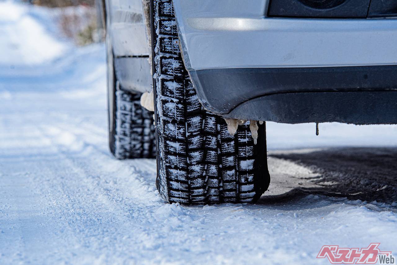 ちなみにタイヤの寿命は残り溝だけじゃない。経年劣化や紫外線の影響でヒビ割れができたタイヤも、性能は期待できないと考えたほうがよい。保存方法にもよるがスタッドレスタイヤの寿命は3~5年程度とされており、それ以上古いタイヤはたとえ溝がたっぷり残っていても危険。新しいものへ買い替えたほうがいいだろう。