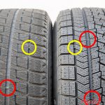 ではスタッドレスタイヤはどうか。実を言うとスタッドレスタイヤには2度寿命が来る。ひとつは雪道で一定の性能が確保できなくなるスタッドレスタイヤとして寿命。次が上記で説明した残り溝が1.6mmを切る、夏タイヤとしての寿命だ。
