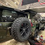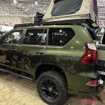 今回展示していたのが、北米レクサスの特別仕様車GXブラックエディションをベースにルーフテントやラゲッジにギアを積んだアウトドアカスタムが施されたモデルであった。