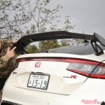 そこで今回の新型シビックタイプR向けに開発されたのが、純正アクセサリーの「テールゲートスポイラー」だ。ノーマル車でもこの部分にはウイングが設けられているが、そのステーはそのままにウイングのみを交換するタイプ。翼断面形状が異なり、材質もドライカーボン製。価格は27万5000円だ。