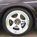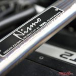 車高は、ビルシュタイン製ダンパーと強化スプリングによって30mmダウン。足回りのリンク類やブッシュ、デフマウントなどはすべて強化品へと交換済みだ。タイヤサイズは前後とも275/35R18となり、NISMO製LM/GT1鍛造ホイール(10J/18インチ)と組み合される。
