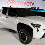 そうした協業の発表会上で、いきなり公開されたのが、本稿タイトルと冒頭文で述べたとおり、新型ハイラックスEVとIMVゼロ。現時点では車両に関する情報がまったくなく、ぶっちゃけ編集部も右往左往している状況ですが、とはいえトヨタは昨年12月にの「EVへの取り組みに関する説明会」で、ピックアップトラックのEVを披露している。「重いピックアップトラックでもEVが出来るのか?」「出来たとしてそれは効率的なのか? 成立するのか?」という懐疑的な意見もあったが、今回「実物」を見せたことで、そうしいた声を跳ね返したかたち。