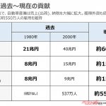 現在クルマは「買う時」、「使う時」、さらに「持っているだけ」でも税金がかかる。たとえば車両価格269万円の車を13年間使用すると、6種類の自動車関係諸税が課せられ、その負担額は合計で約180万円になる(自工会試算)。自動車ユーザーは、これらの税金以外にもさらに有料道路料金、自動車保険料(自賠責および任意保険)、リサイクル料金、点検整備など、多種・多額の費用を負担している。