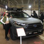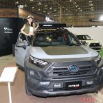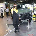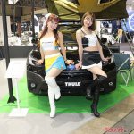 そんな中、昨年に続きユニークな展示方法を採用したのが、ソフト99のブースだ。プレミアムコーティングブランド「G’ZOX」の展示を行った同ブースでは、女性コンパニオンが移動式のガラスケースの中に入って来場者にアピールを行った。