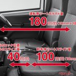 運転席もクラストップのリクライニング角度最大40°とシートスライド量180mmを実現し、大柄な人でも乗用車のようなゆとりある姿勢での運転が可能となっている。