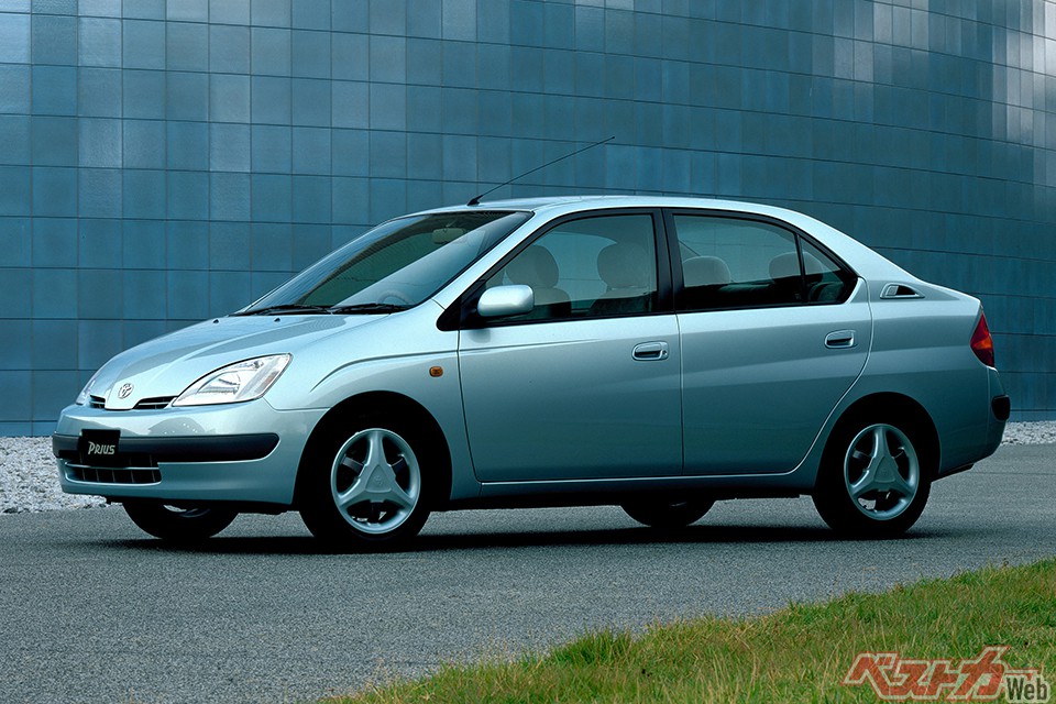 初代プリウスは当時流行していた、やや車高を高くした5ナンバーサイズの4ドアセダンのボディに、1.5Lガソリンエンジン+モーターのハイブリッドシステムを搭載。