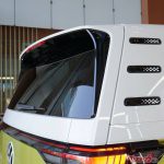意外だったのはタイヤサイズ。ID.BUZZ、こう見えて後輪駆動なのだが、フロントが235/45R21に対しリアが265/40R21という前後異径サイズだった。これはリアのトラクション確保というよりも、荷物を積んだ際の耐荷重アップが狙いだろう。タイヤ銘柄は韓国ハンコックの「ベンタスS1 evo3 EV」というEV専用タイヤだった。