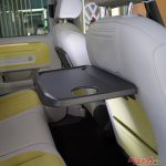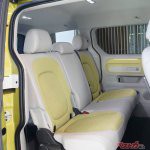 特別に許可をいただき、スライドドアを開けて車内に入らせてもらった。2m近い全幅を誇るだけあり横方向の広さはたっぷり。大人でも3人が並んで座れるし、60:40で分割して倒すことも可能だ。いっぽう縦方向も予想以上に広く、大げさにいえば「全長がほぼそのまま車室」という印象。ID.BUZZのホイールベースは2989mmもあるのだが、パワーユニット配置の自由度が高いEVならではのスペース設計と感じた。