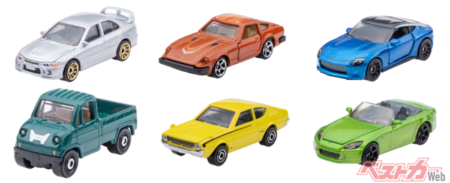 各車種それぞれにギミックが付いた、日本車種のみを集めたダイキャストカーアソートが登場します。1970年代に日本で発売されていたことを想起させる、レトロな箱のパッケージも特徴的です。