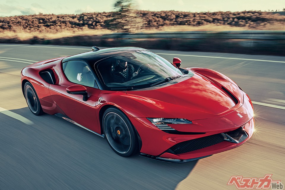 フェラーリ初のPHEVを採用した市販車だけど、省燃費を目的とせずパワーに変換することで1000psを発生させている。さすがF1GPに初年度から参戦しているメーカーのクルマだけあって独創性が満載だった。