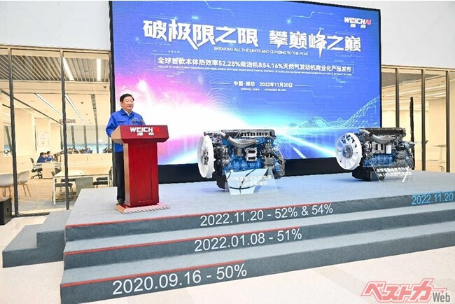 2020年9月、濰柴は世界初の本体熱効率50.23%のディーゼルエンジンを発表し、2022年1月には再びディーゼル本体の熱効率を51.09%まで向上させました。