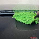 まずはダッシュボードにたまった埃取りから。リンレイの「ホコリキャッチャー」と「ホコリキャッチャーミニ」でザザッと埃を取ってみました。マイクロファイバークロスが、埃をまき散らすことなく、埃をすくいとってくれます。ダッシュボード奥まで入れられるのでミニのほうが使いやすかったですね。