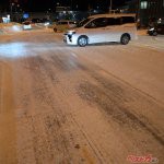 旭川の気温は氷点下5℃あたり。路温も0℃~氷点下2℃ほど。つまり凍っている状況だ。もちろん積雪路面に比べれば摩擦係数も減るので滑りやすい。早朝の国道を走っているだけでも、信号からの加速や交差点で「ビクッ」と挙動を乱すクルマが散見される。