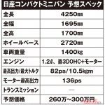 車名はノートの名がつかない可能性もあるが、クルマの出来のよさで高い評価を得ているノートがベースだけに、そのコンパクトミニバンも大いに期待できそうだ。