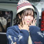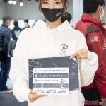 そしてその隣でモデリスタのアピールを行っていたコンパニオンもなかなかの人気だった。このブースに限らず、注目車の隣に立つ注目のコンパニオンが会場のあちらこちらで登場していたのだ。
