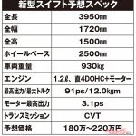 現行はK14C型の日本に対し、欧州仕様では改良型のK14D型+モーターが販売されていて、若干パワーアップさせて新型スイスポに搭載される可能性が高い。価格は220万~250万円と予想。コスパの高さは相変わらずだ。